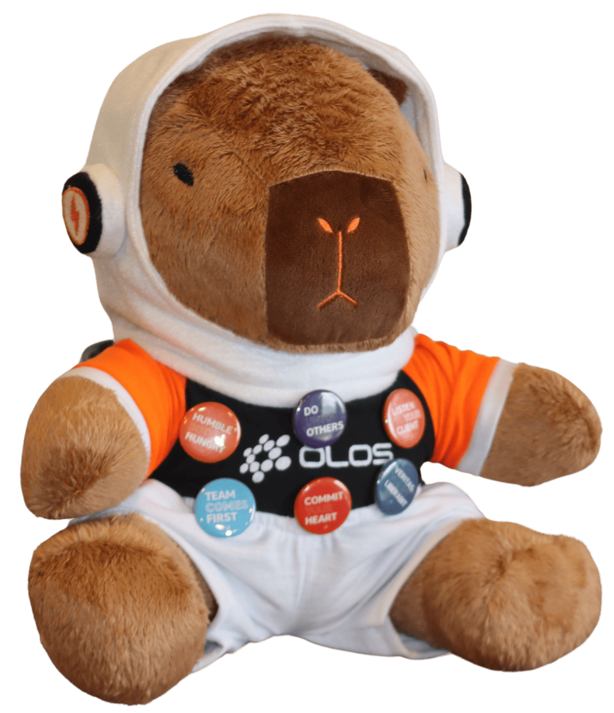 Soy un capibara, representante de la fauna brasileña, y reflejando a Olos, soy sociable, pacífica y colaboradora. Adaptable y resistente, simbolizo la flexibilidad indispensable en tecnología. Con mi mirada empática, reflejo la actitud acogedora de Olos hacia clientes y socios.